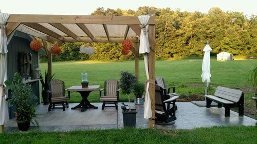 "We are enjoying our new bi layered patio that Russ Moore and sons concrete made for us!! Absolutely beautiful!!"